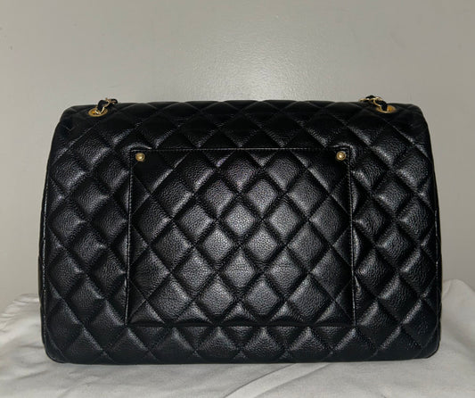 CHANEL 24C XXL Travel Flap Bag Quilted Calfskin Leather Black / Gold Hardware