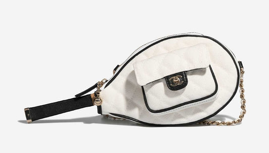 CHANEL 23C Tennis Racket Clutch Crossbody Bag with CC Vanity Mirror White/Black