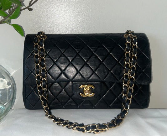 CHANEL Medium Classic Double Flap Lambskin Quilted Handbag Black / 24K Gold