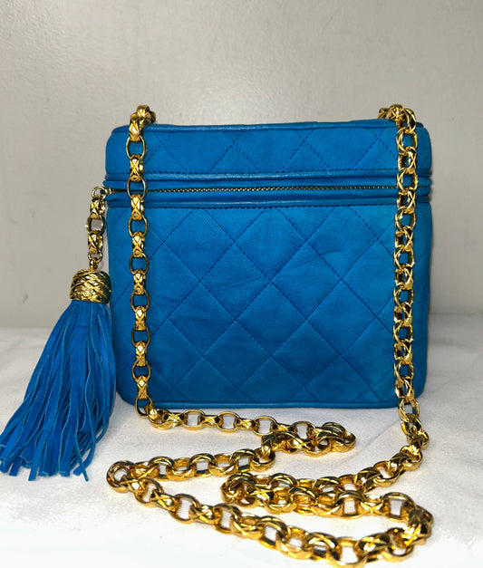 CHANEL Vintage Turquoise Suede Camera Crossbody Bag w/ Tassel 24K Gold Hardware