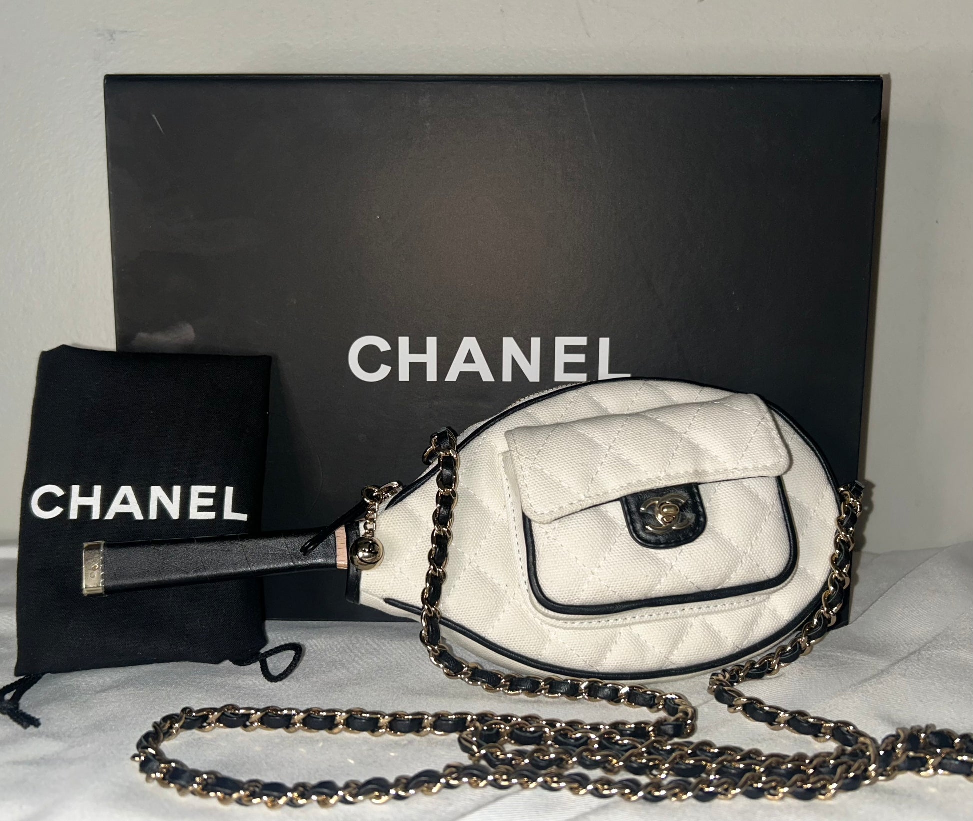 - From Chanel’s rare 23C collection, the Tennis Racket Clutch with Chain is a highly collectible novelty piece