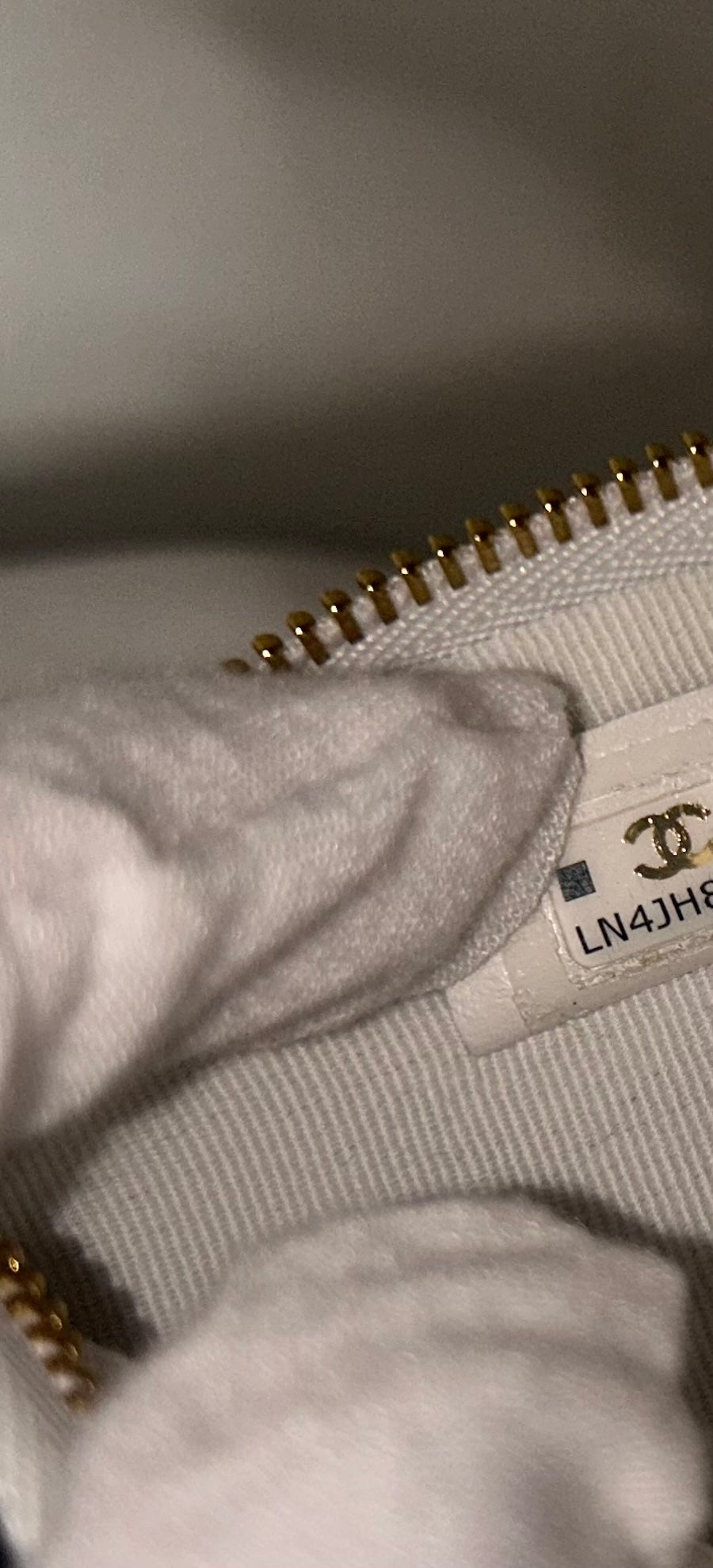 CHANEL 23P Tennis Racket Clutch Crossbody Bag w/ CC Vanity Mirror White/Black