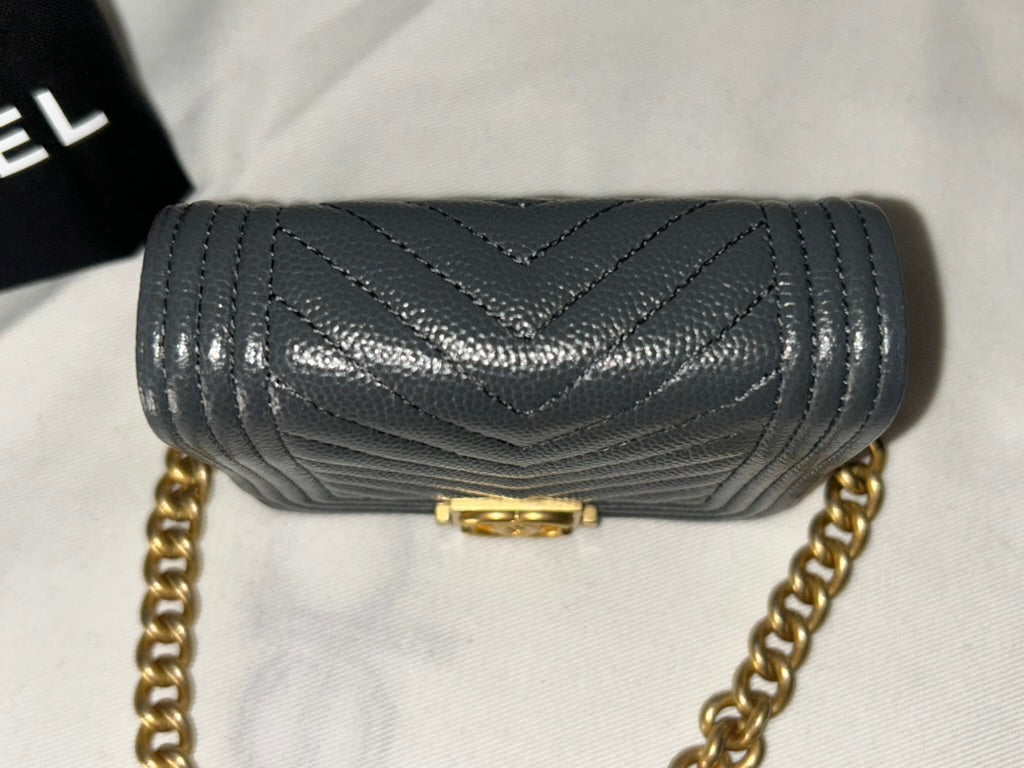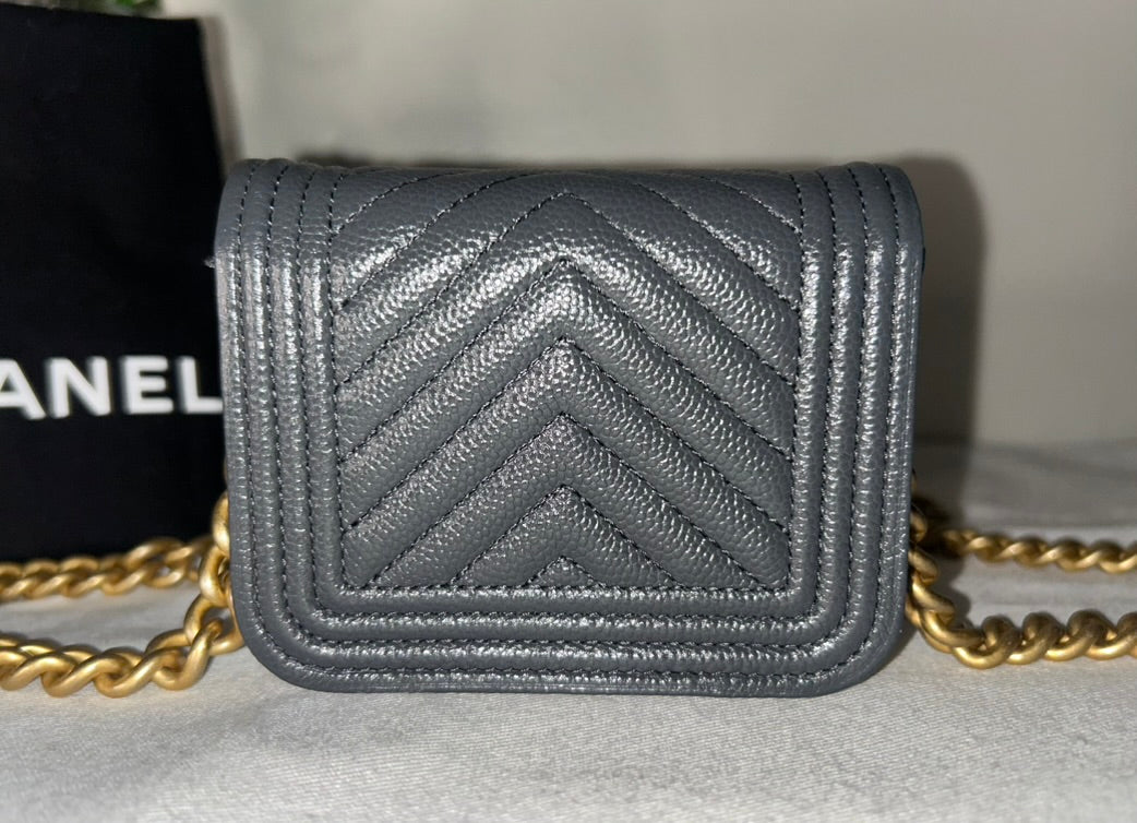 CHANEL Boy Chevron Quilted Caviar Leather Belt Bag in Dark Gray