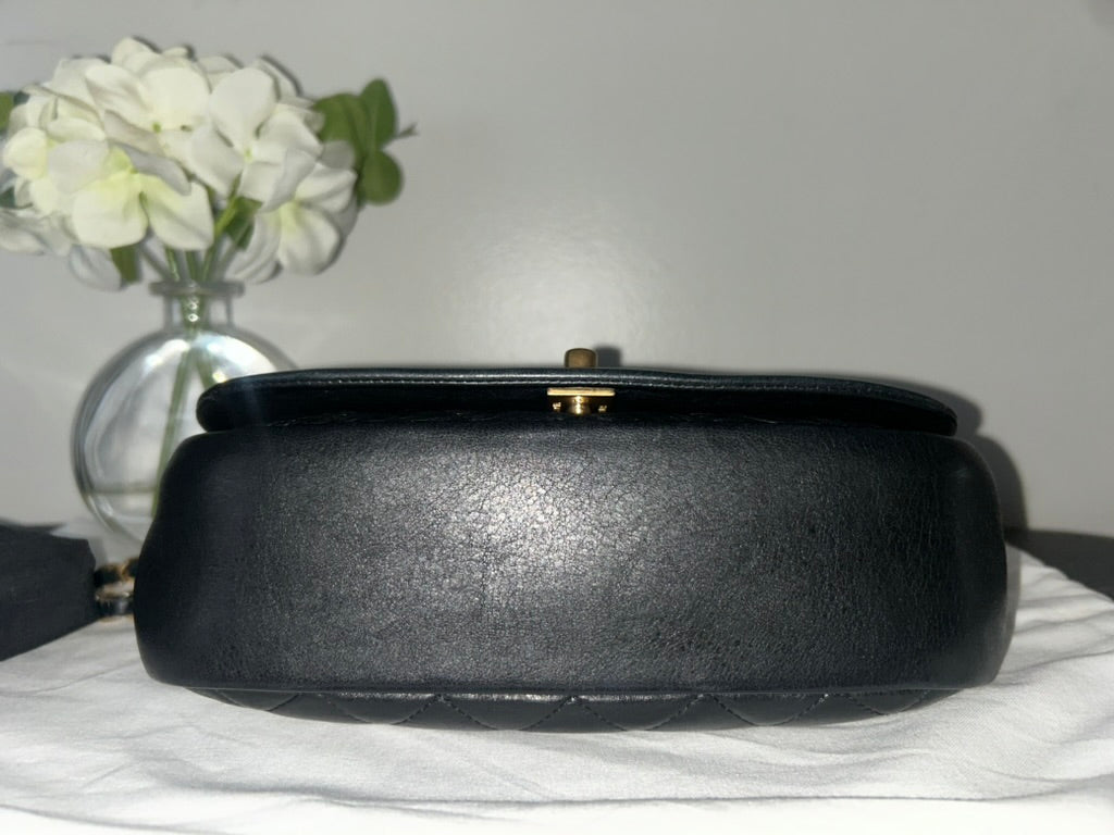 CHANEL CC Braided Saddle Flap Bag Quilted Lambskin Black/Dark Navy