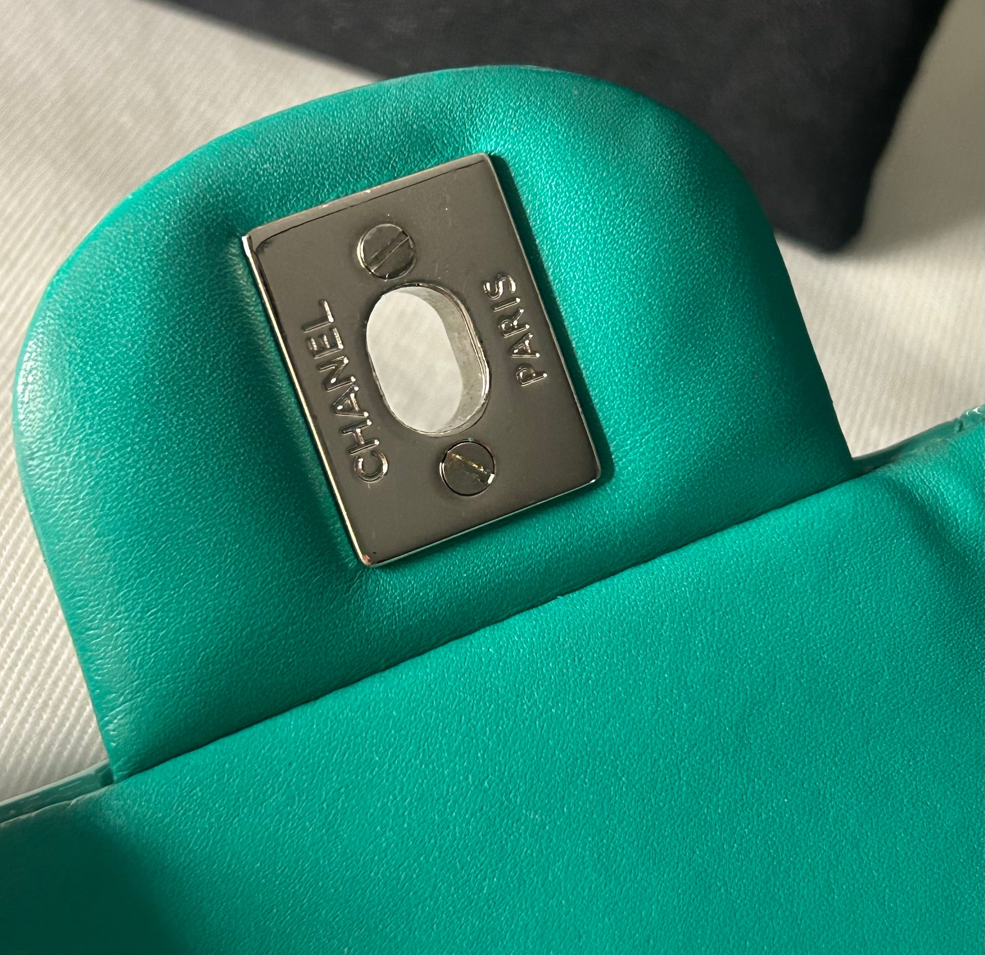 CHANEL CC Classic Quilted Patent Leather Single Flap Shoulder Bag Turquoise