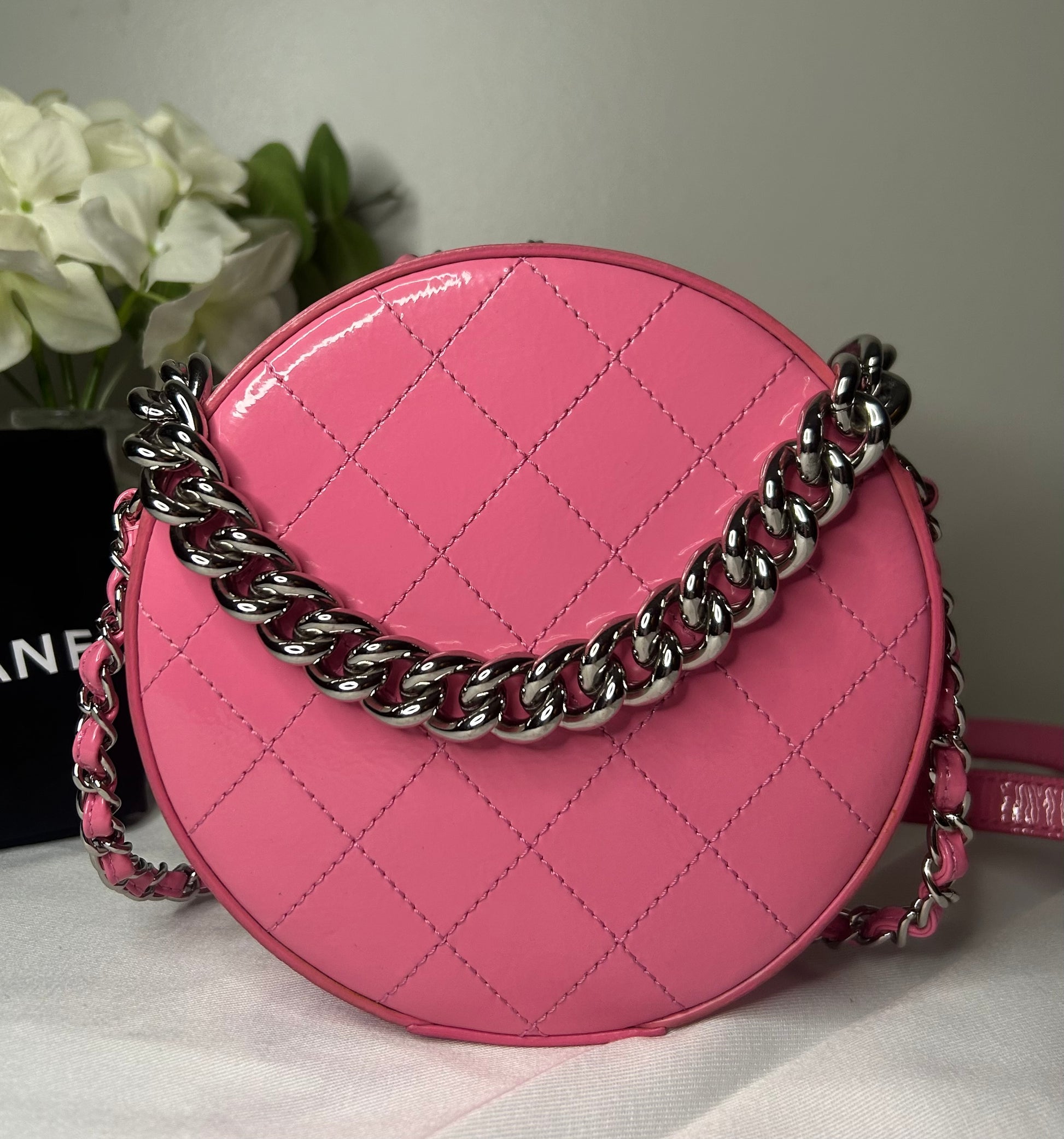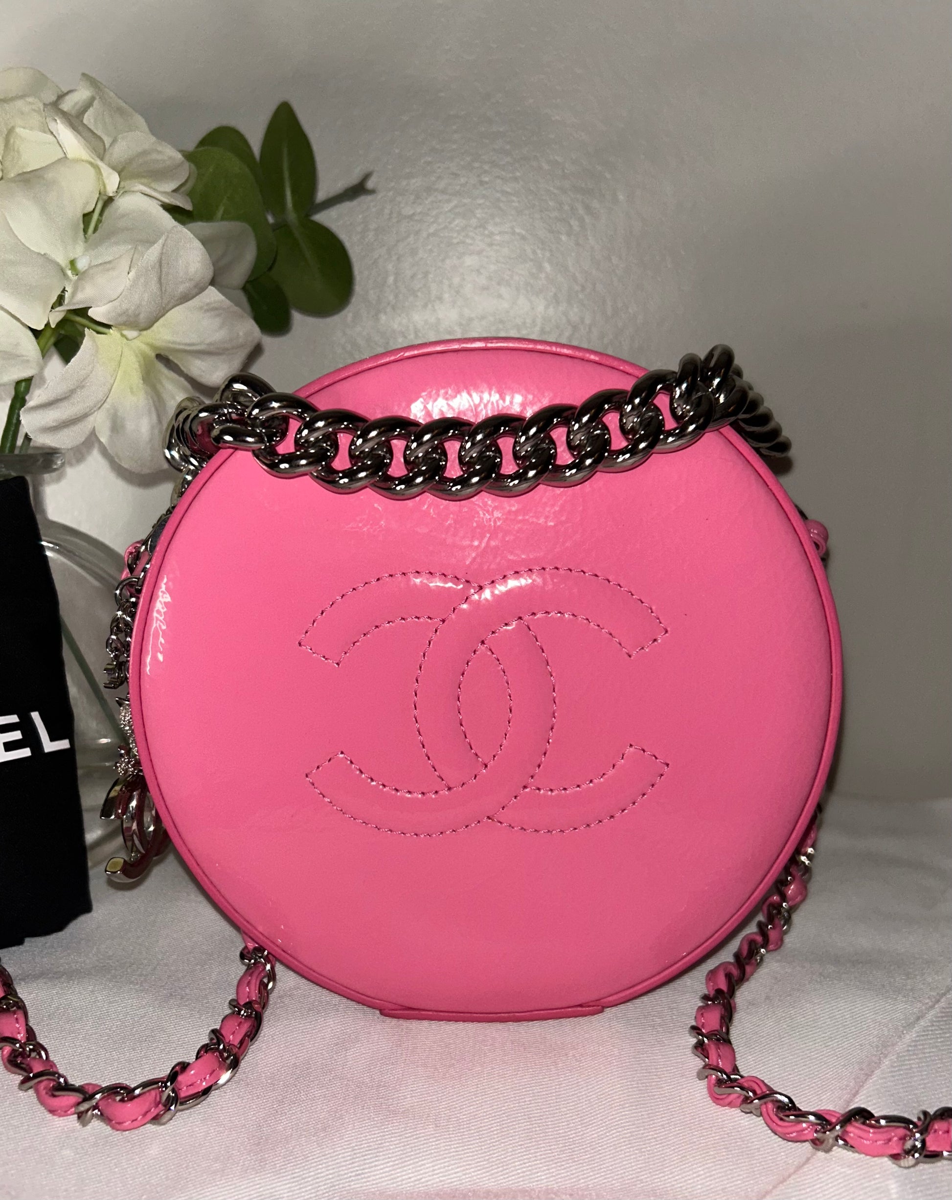 CHANEL CC Round As Earth Patent Leather Crossbody Bag Pink