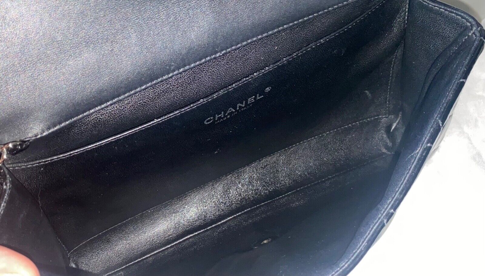 CHANEL Classic Quilted Patent Leather Chain Flap Shoulder Bag Black