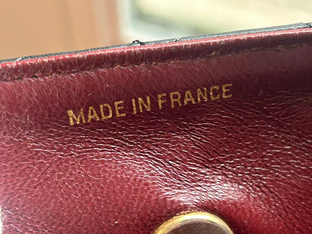 - burgundy lambskin leather lining w/ wall slip pocket inside