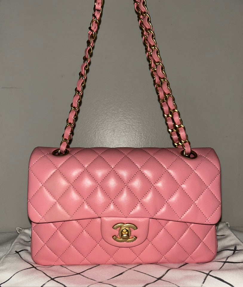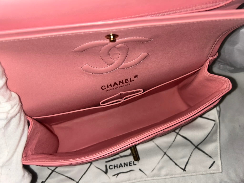 CHANEL Classic Small Double Flap Bag Quilted Lambskin Light Pink / Gold
