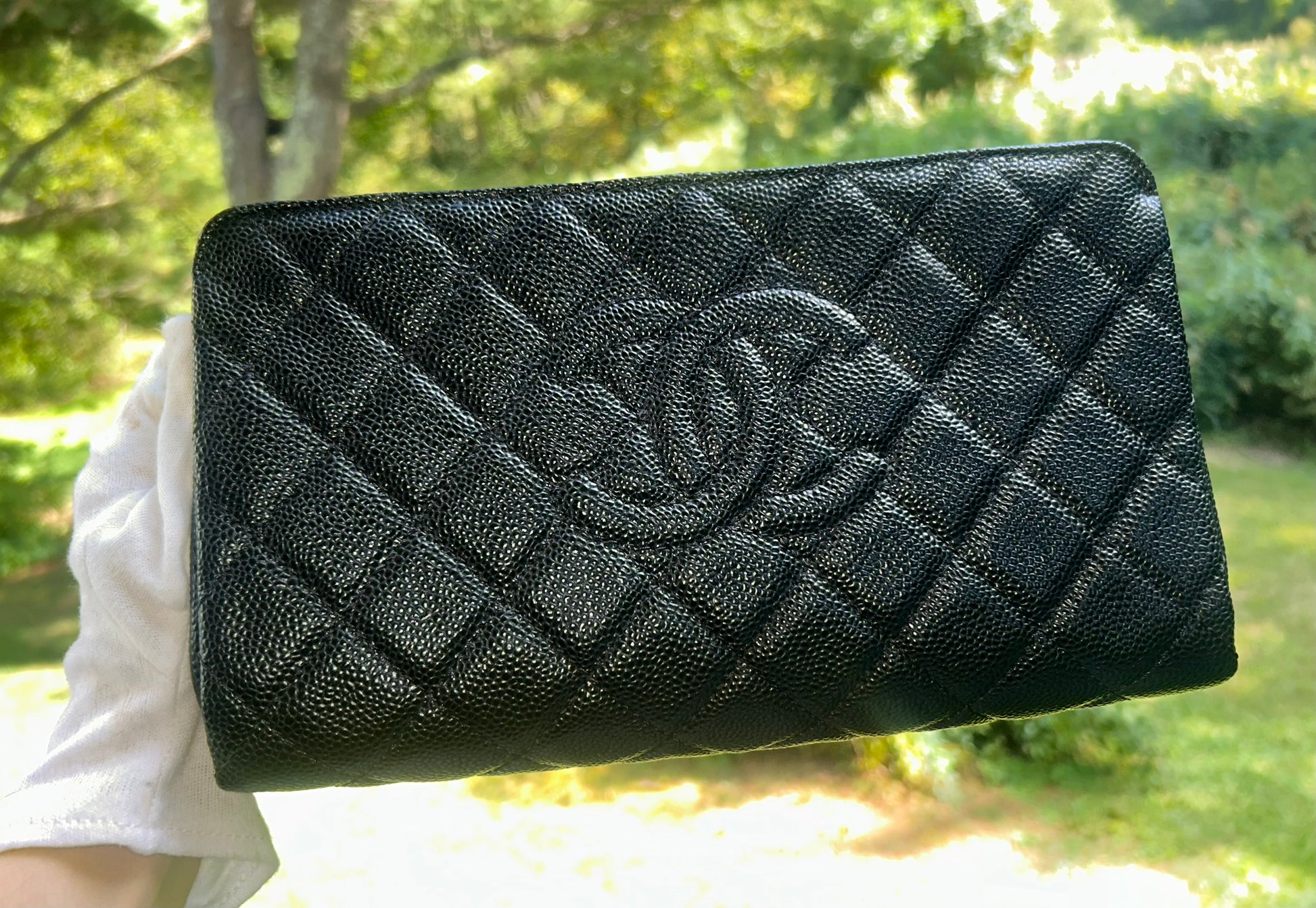 CHANEL Timeless CC Medium Clutch Quilted Iridescent Caviar Black