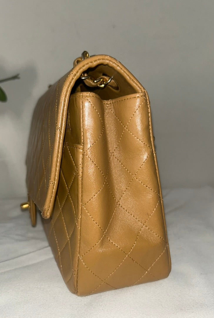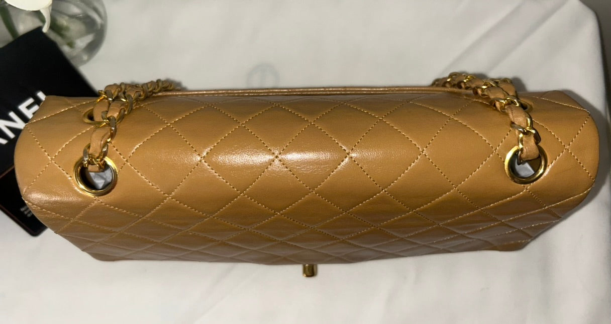 CHANEL Vintage Medium Single Flap Bag Quilted Lambskin Caramel / 24K Gold